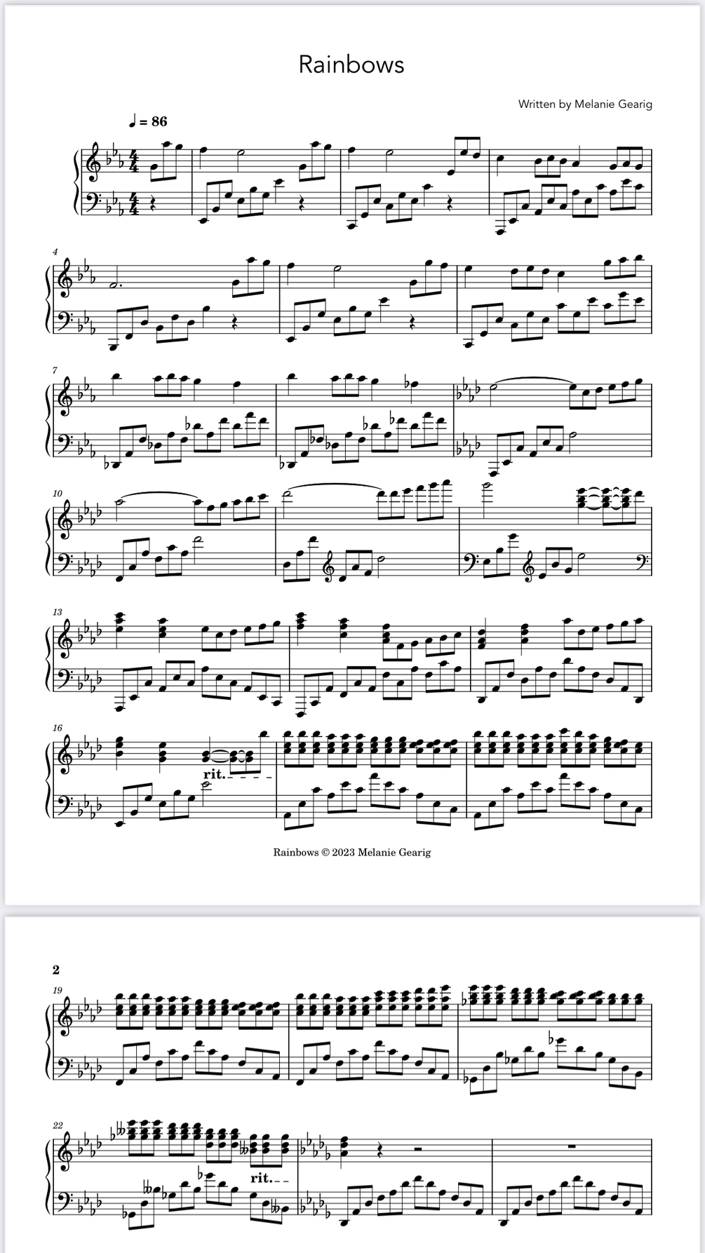 Downloadable pdf sheet music of the piano solo "Rainbows"
