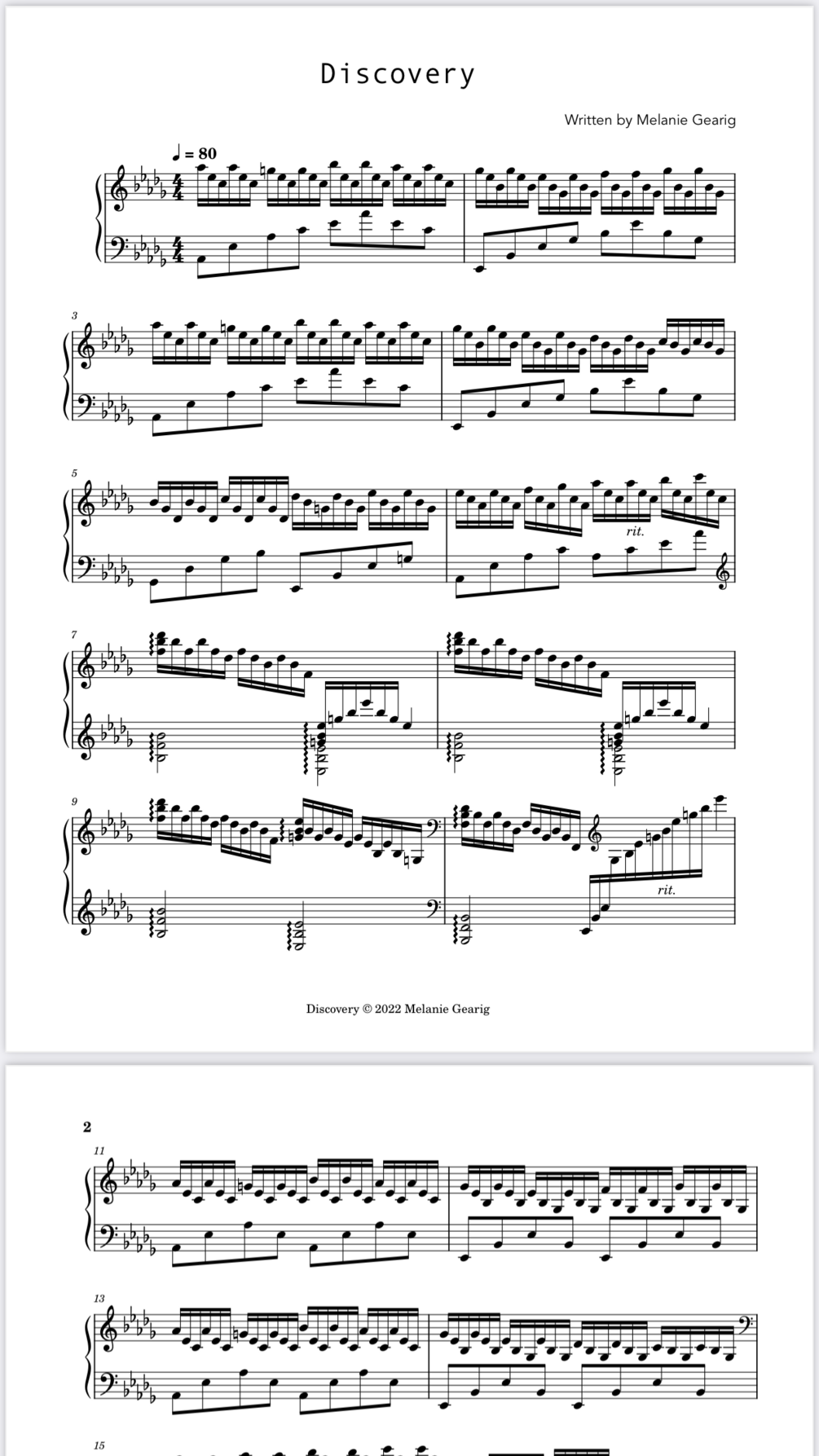 Downloadable pdf sheet music of the piano solo "Discovery"